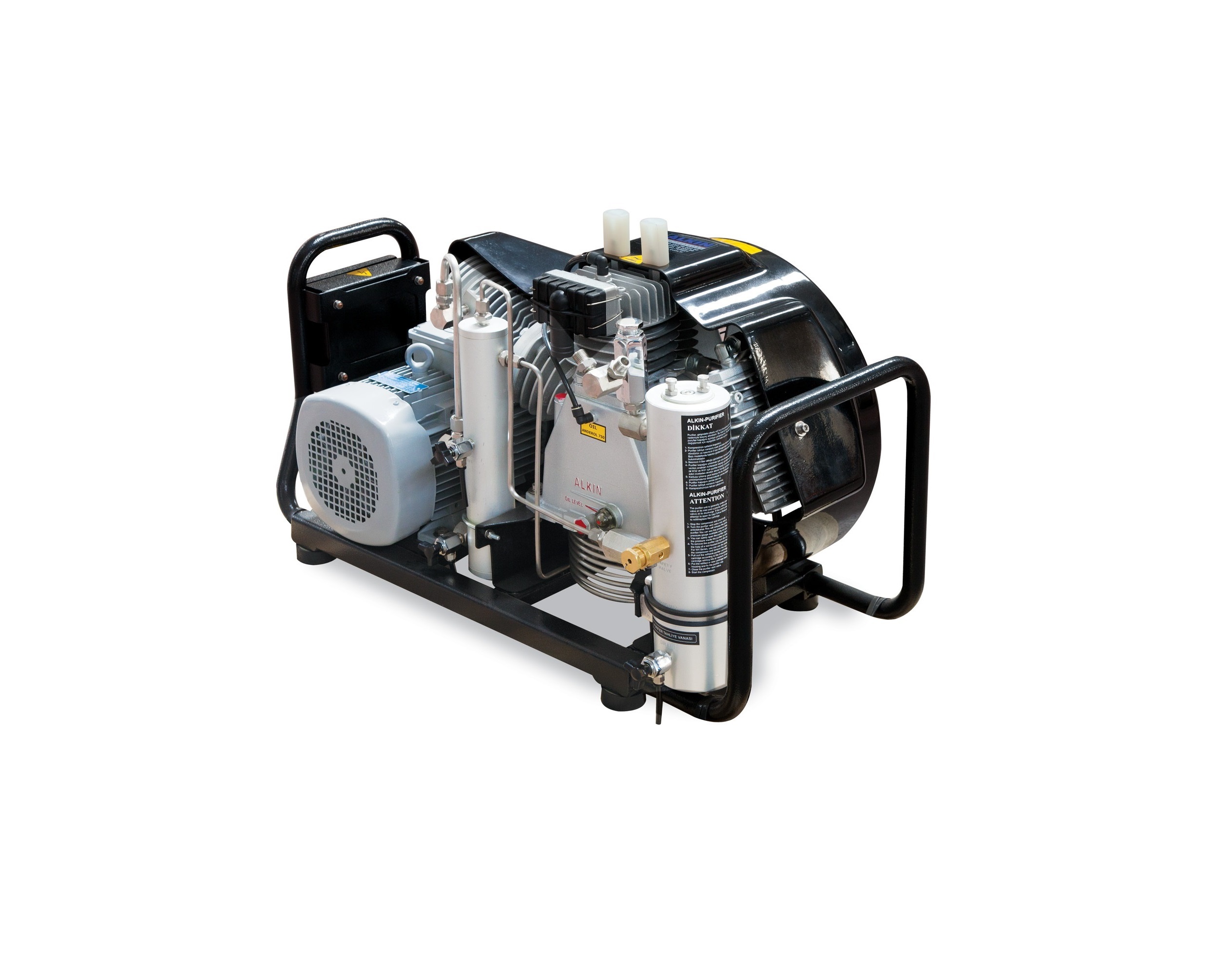 110 ila 145 litre basınçlı hava kapasitesine sahip, maksimum 350 bar basınca ulaşabilen yüksek basınçlı hava kompresörü; elektrikli, benzinli ve dizel motor seçenekleriyle kullanıcılara sunulmaktadır. Solunabilir hava ve yüksek basınçlı hava ihtiyaçlarını karşılamak üzere EN 12021 standardına uygun olarak tasarlanan kompresörün teknik özellikleri aşağıda sunulmuştur.